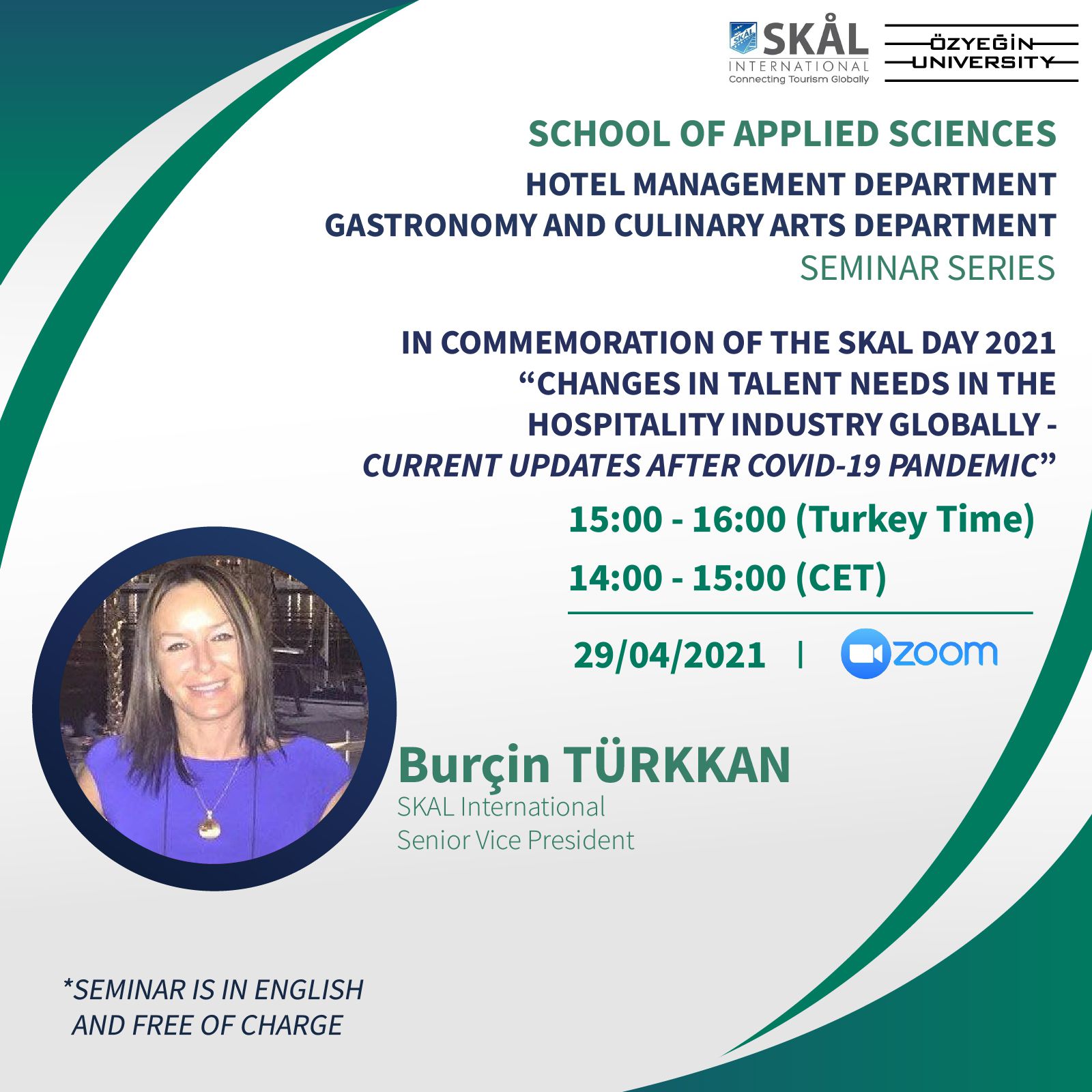 The Özyeğin University School of Applied Sciences and Skål International Turkey National Committee organises the webinar ‘Changes in Talent Needs in the Hospitality Industry Globally - Current updates after Covid-19 Pandemic'.