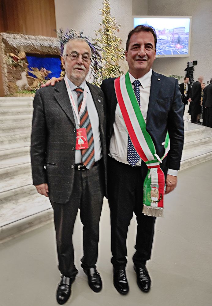 Antonio Percario, Membre d'Honneur de Skål International, se reúne con el Papa Francisco con motivo de la inauguración del árbol y el belén en la Plaza de San Pedro con el encendido de las luces de Navidad.