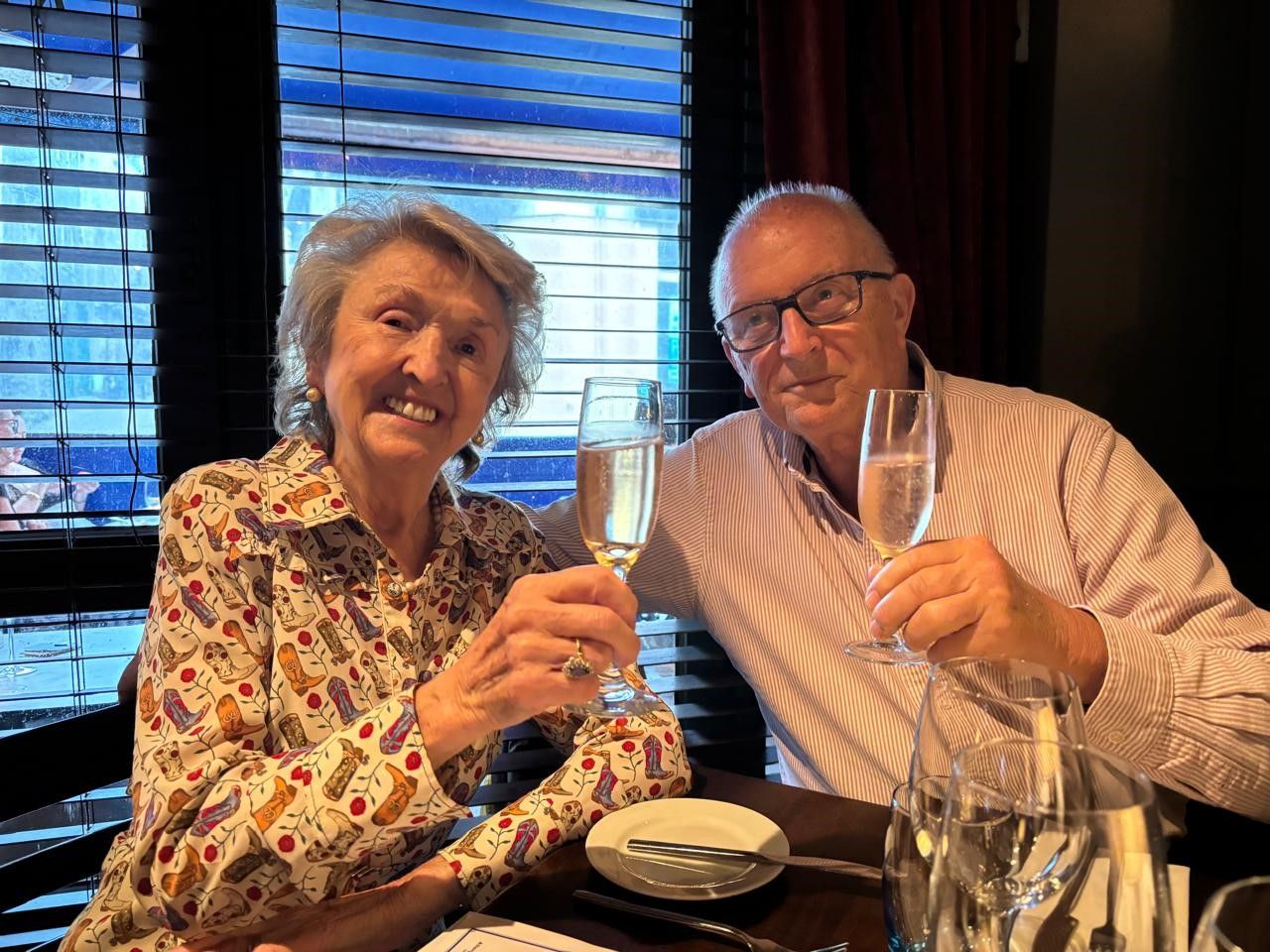Esta foto muestra a Mary Bennett, nuestra primera presidenta mundial en 2003, y a Tony Clegg-Butt, presidente mundial en 2002, poniéndose al día con una copa de champán en la casa de Mary en Galway, Irlanda, en agosto de este año. Las viejas amistades reavivadas son lo mejor del mundo.