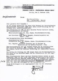 1939, Berlin. Letter from Georg W. Emich to Honzatko (Zurich).